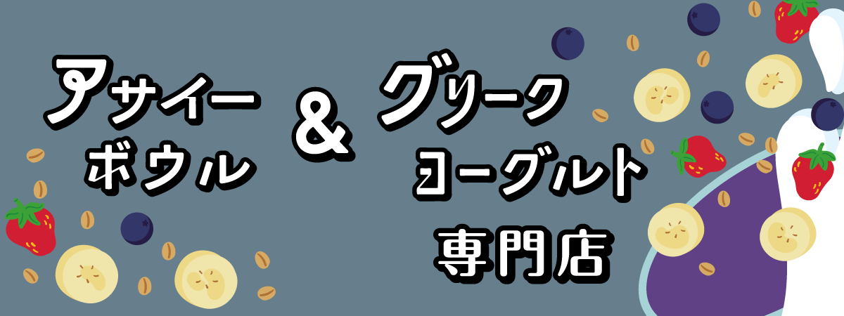 ・文字内容は「アサイー グリーク&ボウル ヨーグルト 専門店」